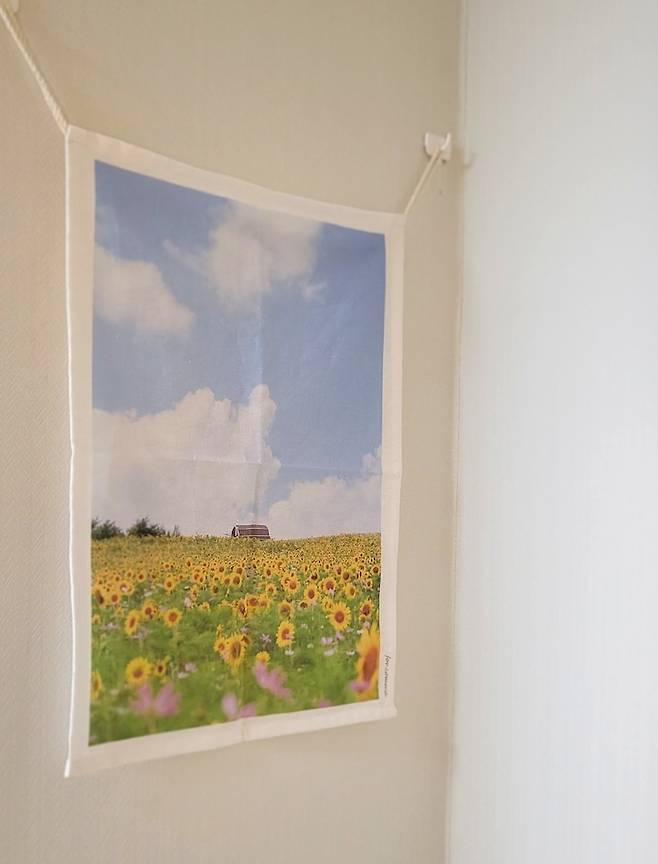 현관에서 들어오면 바로 주방이 보이기 때문에 잘 꾸미고 싶었는데 어렵다. 아직 현재 진행형. 일단 냉장고에 붙여둔 콤마씨의 패브릭 포스터와 엽서로 따숩~하고 노랑노랑한 느낌을 내고 있다...!