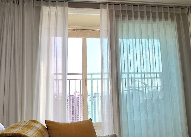 내 힐링 공간 발코니. 오는 손님마다 소파에 앉아 발코니 쪽을 보며 바깥을 구경하다 간다.