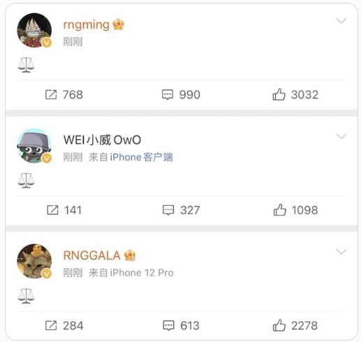 RNG의 재경기 소식은 중국 웨이보에서 실시간 검색어 3위까지 오르며 폭발적인 관심을 모았다. 중국 네티즌들은 라이엇게임즈의 결정에 강하게 불만을 표했다. "그냥 한국에 우승을 줘라", "RNG는 기권하라"는 의견이 빗발쳤다. 'GALA' 천웨이, 'Ming' 시썬밍 등 RNG 선수들도 개인 웨이보를 통해 아무 말 없이 천칭 이미지만 올렸다. 재경기 결정이 불공정하다는 뜻으로 풀이된다.
