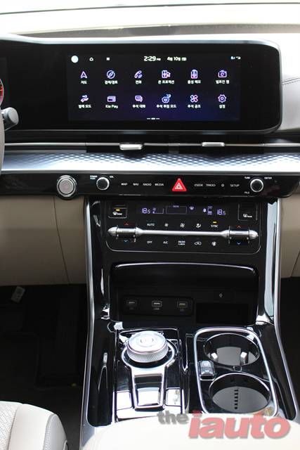 12.3인치 클러스터와 12.3인치 내비게이션이 통합된 파노라마 디스플레이가 럭셔리한 느낌을 가득 채우고 있으며, 터치 방식의 센터페시아 버튼을 적용해 편의성을 높였다. 크렐 프리미엄 사운드 시스템과 앰비언트 라이트는 감성적인 몰입감을 선사하며, 특히, 크래쉬 패드 중앙을 가로지르는 슬림한 에어벤트(송풍구) 일체형 메탈 가니쉬는 하단의 고급 우드 가니쉬와 완성도 높은 조화를 이루며 고급스러움을 극대화했다.
