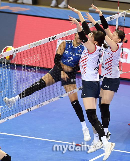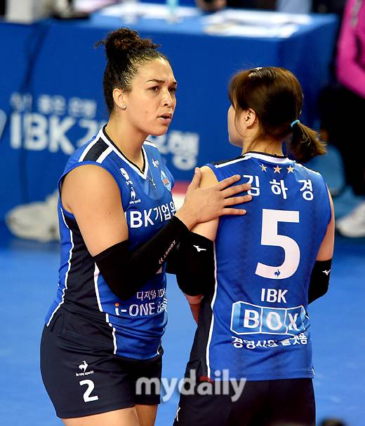 이날도 외국인 선수의 아쉬움이 컸다. 양 팀은 1.2세트 치열한 공방을 주고받으며 대등한 경기를 펼쳤다. IBK 기업은행은 1세트에서 김희진을 앞세워 25-25 듀스까지 갔지만 집중력 부재로 세트를 내줬다. 안혜진에게 서브 득점을 허용하고 이어서 김하경의 범실로 김호철 감독을 허탈하게 만들었다.