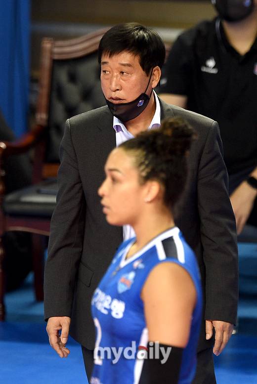 [7연패에 빠지며 외국인 선수의 아쉬움을 드러낸 김호철 감독. 사진 = 화성 유진형 기자 zolong@mydaily.co.kr]