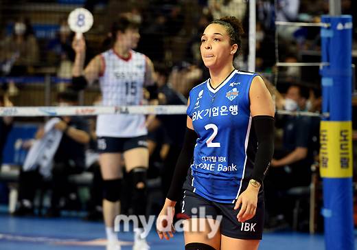 IBK 기업은행은 지난달 외국인 선수 레베카 라셈(24·미국)과 결별하고 푸에르토리코 출신 달리 산타나(26)를 영입했다. 하지만 산타나는 올해 소속팀이 없었던 탓에 경기를 뛸 준비가 전혀 되지 않았고 지금까지 경기력도 올라오지 않고 있다. 세트 후반 교체 출전하지만 타점 낮은 공격으로 상대 블로킹에 쉽게 차단 당한다.