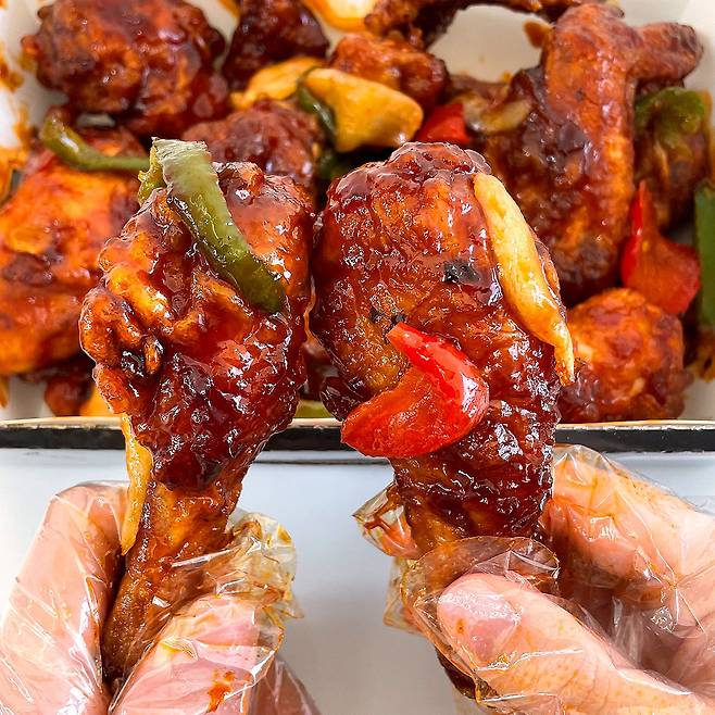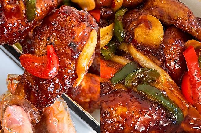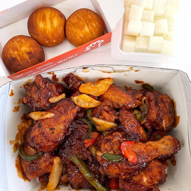 어향소스가 듬뿍 버무려져 있어서 그런지 오픈하자마자 냄새가 와.. 사람 정말 미치게 만들더라구요 ㅠ 게다가 진짜 중식요리처럼 웍으로만 낼 수 있는 불향에 놀라서 흠칫..!(☉ o ☉) 치킨집에서 가능한 건가 해서 찾아보니 정말 웍으로 볶아서 만든다고..