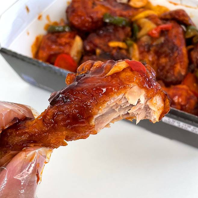꾸덕꾸덕한 소스와 야채도 꽤 들어있어서 자잘하게 찢은 치킨에 밥 슥슥 비벼서 치밥해먹기도 딱일 것 같아요! 이번에 정말 제대로 맛있는 치킨 하나 찾은 것 같아서 아주 기분이 좋았네요 ㅎㅎ