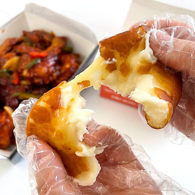 하... 이게 무슨 일이죠..? 멕시카나 원래 이렇게 비주얼 맛집이었나요..?? 배달 도착했을 때부터 좀 식어있어서 딱딱해졌을 거라 생각했는데 이건 뭐.. 몰캉몰캉 미치도록 쫀득한 찹쌀도넛 속에 부드러운 매쉬포테이토와 치즈가 쏟아져 나오는 느낌이었어요!