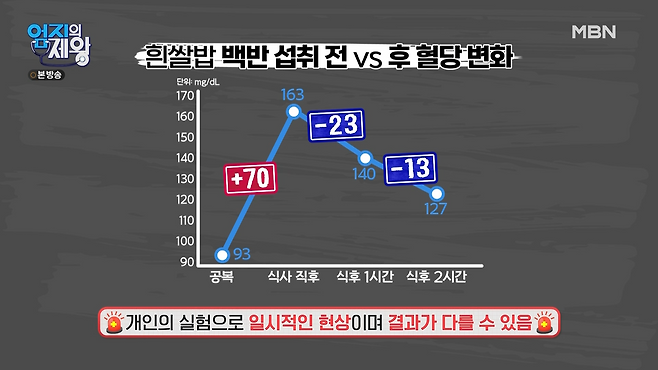 공복에 흰쌀밥을 섭취하면 혈당이 70이나 치솟는 이 현상!