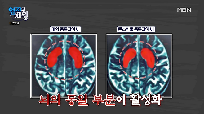마약 중독자가 마약을 먹을 때와, 탄수화물 중독자가 탄수화물을 먹었을 때에