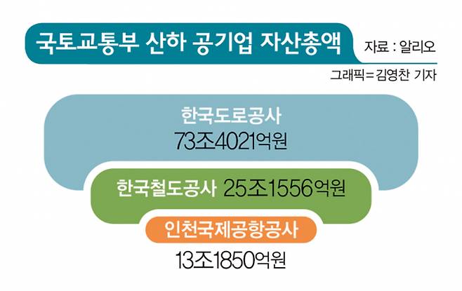 인천국제공항공사의 같은 기간 매출은 ▲2019년 2조8265억원 ▲2020년 1조1575억원 ▲2021년 5594억원 등으로 감소율이 80.2%에 달했다. 매출이 2년 새 5분의 1 토막 났다. 코레일 매출도 ▲2019년 6조4014억원 ▲2020년 4조9586억원 ▲2021년 5조7647억원 등으로 역성장했다. 지난해 인천국제공항공사는 -9300억원, 코레일은 -8881억원 등의 영업손실을 기록했고 도로공사만 6185억원 이익을 냈다.