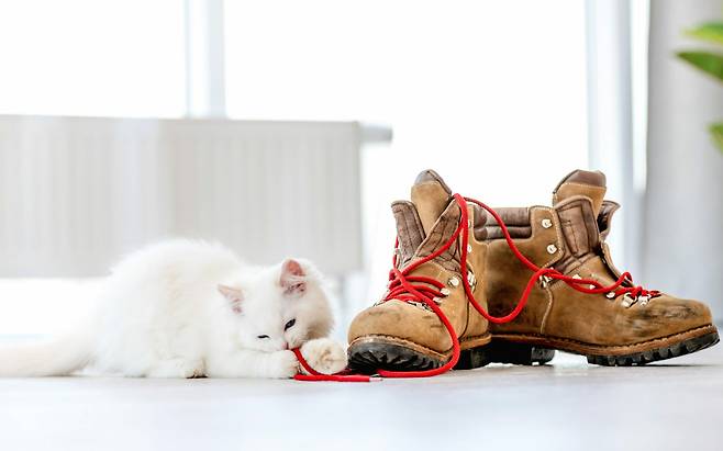 고양이가 신발을 공격하거나 물어뜯는 경우도 있는데요. 이는 신발을 장난감으로 생각하고 놀고 있다는 의미일 수 있습니다. 특히, 끈이 달린 신발의 경우 고양이에게 장난감으로 보이기 쉽겠죠.