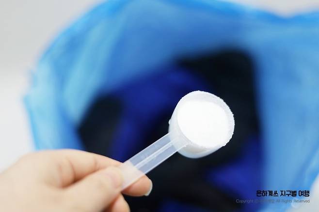옷이 충분히 젖을 정도로만 넣어주시면 됩니다.