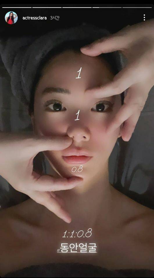 공개된 사진 속 클라라는 마사지를 받던 중 자신의 얼굴 비율을 체크하는 모습을 보였습니다. 특히 그녀는 자신의 동안 얼굴의 비결로 1:1:0.8의 황금 비율을 언급하기도 했습니다.