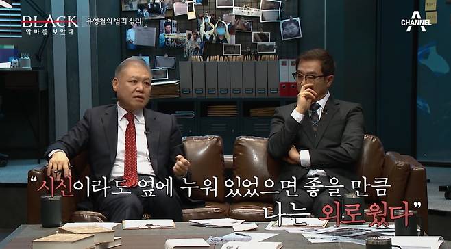 16일 방송된 채널A 범죄 예능 <블랙: 악마를 보았다>에는 '사이코패스'의 대명사로 불리는 연쇄살인범 유영철의 이야기를 다뤘다. 영화감독 장진, 배우 최귀화, 프로파일러 권일용, 그리고 배우 한승연이 출연하여 유영철이 옥중에서 직접 작성한 세 통의 자필 편지를 통해 악의 비뚤어진 심리를 분석했다.