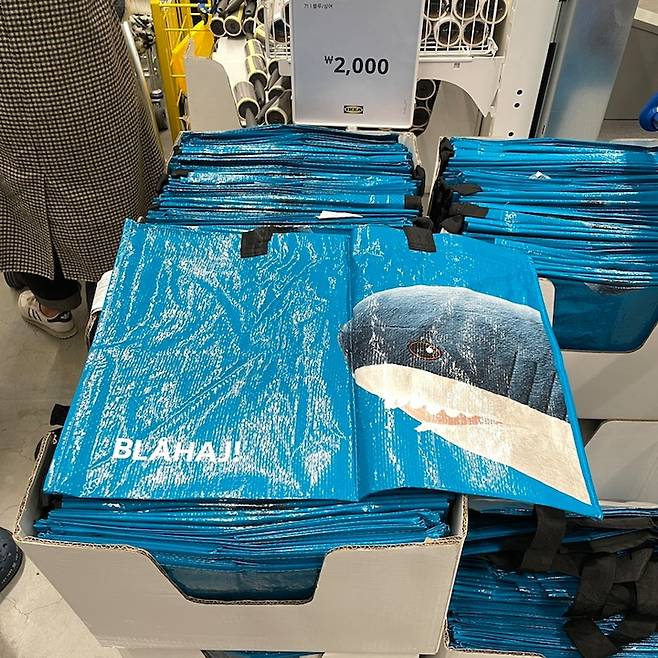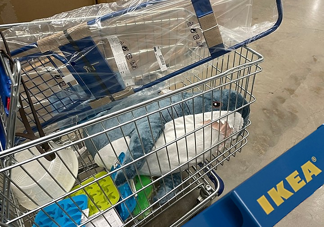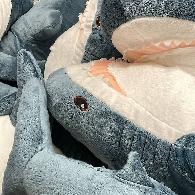 이케아 상어인형 블로하이(Blahaj)다. 4월인가 단종된다 해서 엄청나게 팔리는 중이다.