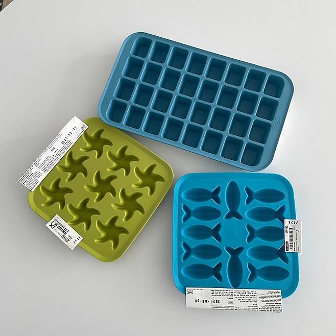 물고기랑 회오리? 불가사리? 특이한 모양이랑 정상적인 직사각형 얼음틀을 구매함! 집 오자마자 베이킹소다로 빡빡 씻어줬다.