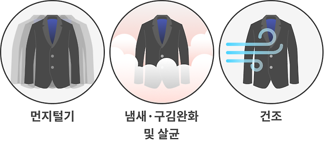 옷에 밴 냄새나 세균을 제거해줍니다.