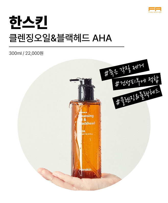 한스킨 (건성) 클렌징오일&블랙헤드 AHA 300ml / 22,000원