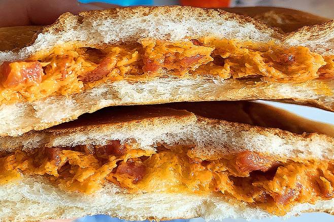 반으로 갈라서 한 입 먹자마자 와... 정말 파이리의 핫소스빵이 맞았어요. 생각보다도 더 매콤한 맛이 강해서 놀라움과 함께 바로 반은 뚝딱해치우고, 전자레인지에 살짝 돌려먹으면 더 맛있다고 했던 게 생각나서 나머지 반은 20-30초 돌려서 먹었더니 기대 이상으로 더 맛있더라구요!