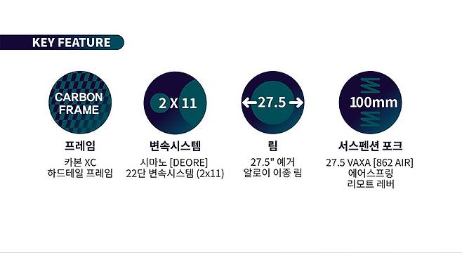 인터널 케이블 방식 카본XC 하드테일 프레임을 장착하고 있어