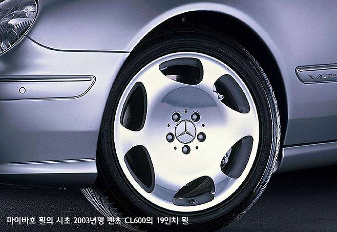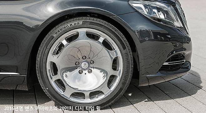 표면을 매끄럽게 만든 알루미늄 재질의 마이바흐 휠은 빛의 반사율이 높아서 휠의 존재감을 강조해 주기 때문에 차량 전체의 이미지도 압도적인 인상을 주게 된다. 신형 마이바흐 승용차의 디시 타입 휠의 규격은 20인치라고 돼 있지만, 이 크기는 225/40R20 규격 타이어의 내경 이고, 이 규격의 타이어에 끼워지는 휠은 타이어와 물리는 림(rim) 부분의 플랜지 크기가 더해져서 외견상으로 보이는 휠의 실제 직경은 약 21인치 정도 된다.