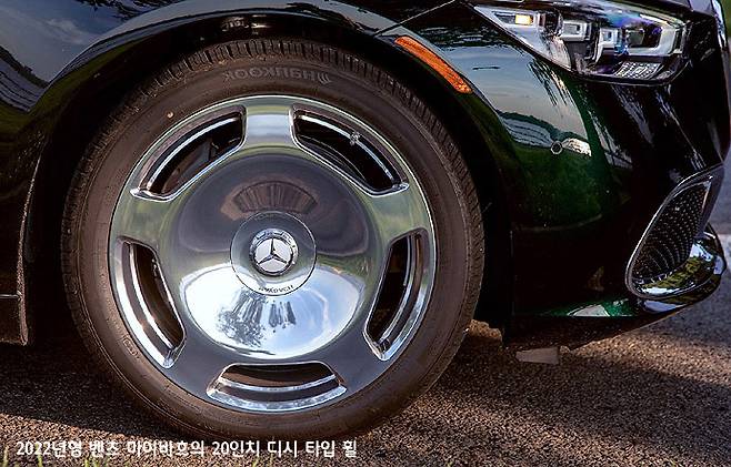 그리고 이렇게 휠 디스크 면적이 넓은 휠을 속칭 ‘불판휠’ 이라고 부르기도 한다. 불고기를 구울 때 쓰는 둥근 불판을 연상시키기 때문일 것이다. 그런데 신형 마이바흐 승용차의 휠은 스포크가 다섯 개였지만, 바로 전 세대의 2016년형 마이바흐 승용차의 휠은 냉각구가 다시 두 개씩으로 나누어진 형태였다.