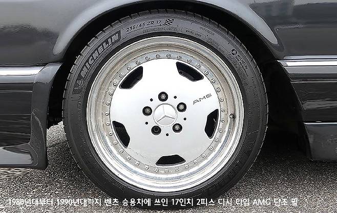 이 휠의 디자인은 더 거슬러 올라가 보면 1980년대부터 1990년대까지 벤츠의 고성능 모델 AMG 차량에 장착된 2피스 구조의 5스포크 휠에서부터 그 형태의 실마리를 찾을 수 있을 것이다. 이 휠은 림과 휠디스크 부분을 별도로 제작해서 리벳을 이용해 조립한 구조였는데, 지금은 단조 기술의 발전으로 림과 휠디스크를 한 몸체로 성형 가능하지만, 과거에는 림과 휠디스크를 별도의 단조 공법으로 제작해 조립해야만 했다.