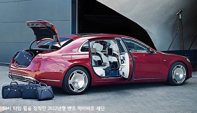 그리고 이렇게 휠 디스크 면적이 넓은 휠을 속칭 ‘불판휠’ 이라고 부르기도 한다. 불고기를 구울 때 쓰는 둥근 불판을 연상시키기 때문일 것이다. 그런데 신형 마이바흐 승용차의 휠은 스포크가 다섯 개였지만, 바로 전 세대의 2016년형 마이바흐 승용차의 휠은 냉각구가 다시 두 개씩으로 나누어진 형태였다.