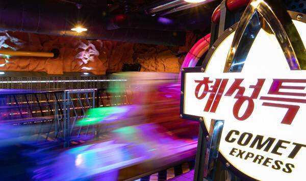 롯데월드의 ‘혜성특급’도 롤러코스터 어트랙션이다. 위험한 우주 공간을 자유자재로 회전하는 우주 열차 좌석에 앉아 즐기는 콘셉트를 가지고 있다. 건설비는 100억 원이 든 것으로 전해지며, 1995년 1월에 최초로 개장했다. 지구를 출발한 특급 열차가 태양계 행성들을 지나, 목성에 불시착한 우주선 주변을 맴돌다가 금성 주위를 통과해 지구로 돌아오는 스토리의 롤러코스터다.
