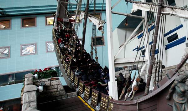 ‘스페인해적선’이라는 특이한 이름을 가진 롯데월드의 어트랙션은 ‘바이킹’이다. 과거 운영된 테마 거리 중 스페인 거리에 이 어트랙션이 위치해 있어서 붙여진 이름으로 전해진다. 최대 상승 각도는 75도로 여타 테마공원의 바이킹에 비해서는 어트랙션의 강도가 약한 편이다. 롯데월드 실내에서 울려 퍼지는 비명 소리는 대부분 이 어트랙션 탑승자들의 것이라 봐도 좋다.