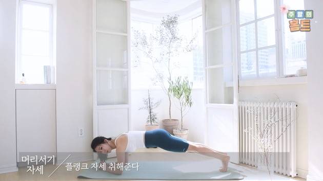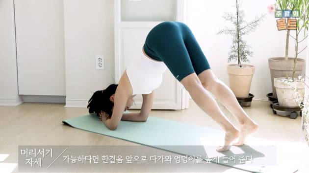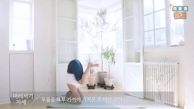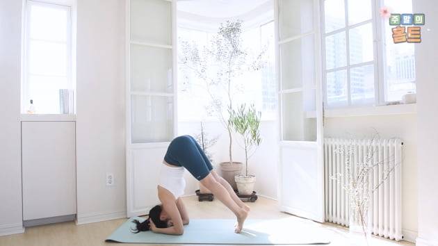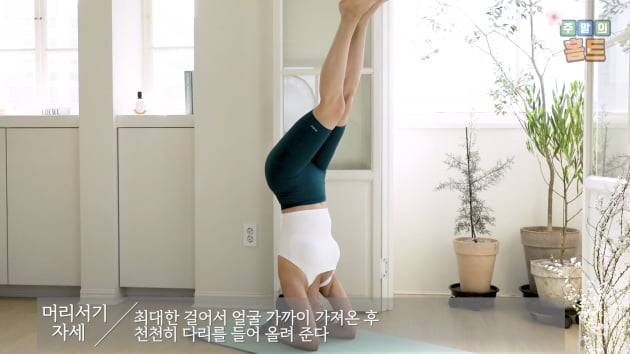 주말의 홈트|한수진의 요가 한 수, '요가의 꽃 머리서기 자세'