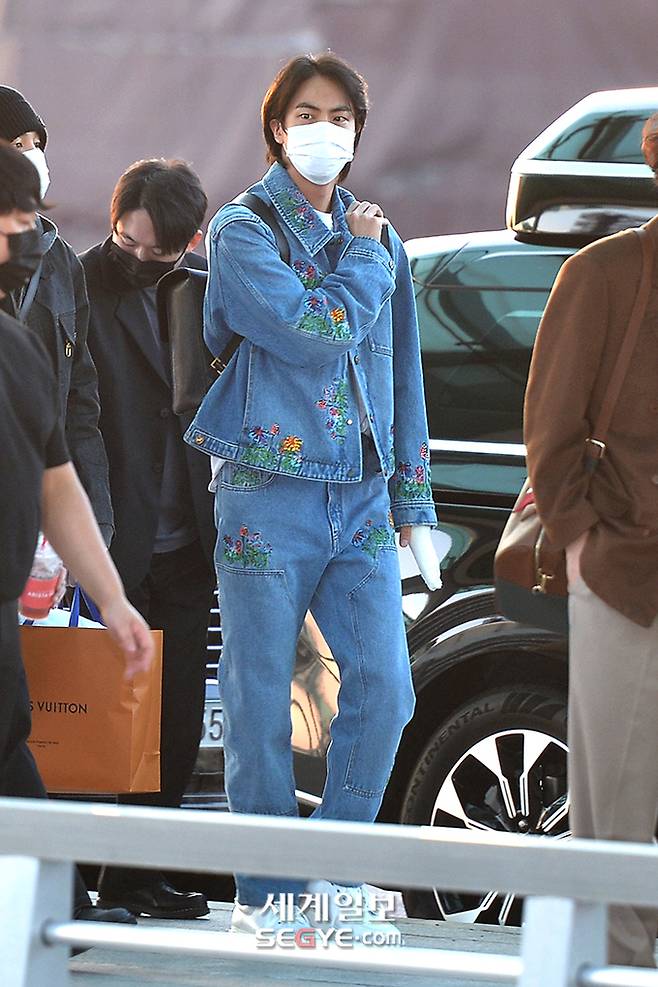 그룹 방탄소년단 진이 28일 오후 '제64회 그래미 어워드 시상식' 및 미국 콘서트 일정을 위해 인천국제공항을 통해 미국 로스엔젤레스로 출국하고 있다.