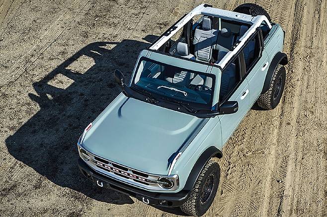 이들 신차 중에는 가장 먼저 공개된 차량은 포드의 상징적인 오프로드 SUV 브롱코. ‘야생마’ 라는 뜻을 지닌 브롱코는 약 25년만에 부활한 포드의 정통 오프로더 SUV 모델로 1966년 첫 출시 후 북미 시장에서 선풍적인 인기를 누렸던 1세대 브롱코의 디자인적 요소를 현대적 감각으로 재해석한 외관이 특징이다. 여기에 포드의 4륜 구동 오프로드 주행 기술력과 다양한 아웃도어 활동에 더 유연하게 대처할 수 있는 각종 안전, 편의 사양이 적용됐다.