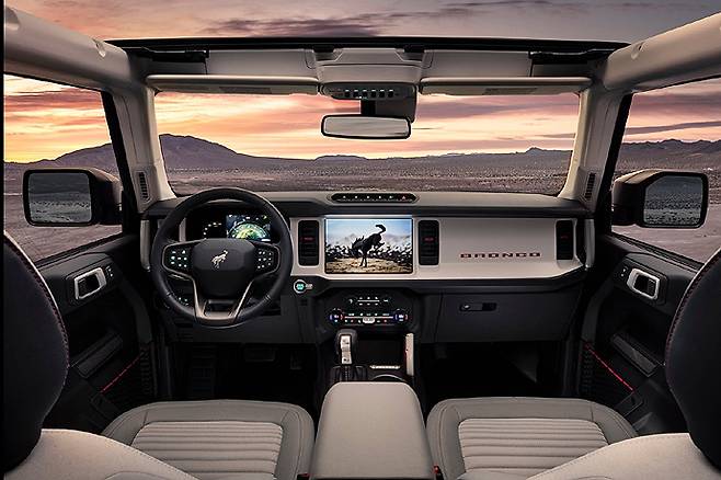 포드 브롱코는 국내 시장에 스타일과 오프로드 성능 모두를 두루 갖춘 4도어 하드 탑 아우터뱅크스 (OUTER BANKS) 모델로 출시된다. 또한 2.7L V6 트윈 터보 차지 엔진과 4X4 시스템 그리고 10단 자동 변속기를 장착해 다양한 지면 상황과 용도에 맞춰 최적의 토크, 힘 및 기어 변속 기능성을 제공한다. 실내에는 B&O 오디오가 장착되어 프리미엄 사운드를 즐길 수 있고 편안함을 더해주는 파워 시트가 적용됐다. 또한 향상된 음성 인식이 가능한 SYNC4는 12인치 터치스크린을 바탕으로 높은 연결성을 갖췄다. 브롱코 아우터뱅크스 모델은 가격은 부가세 포함 6,900만원이다.