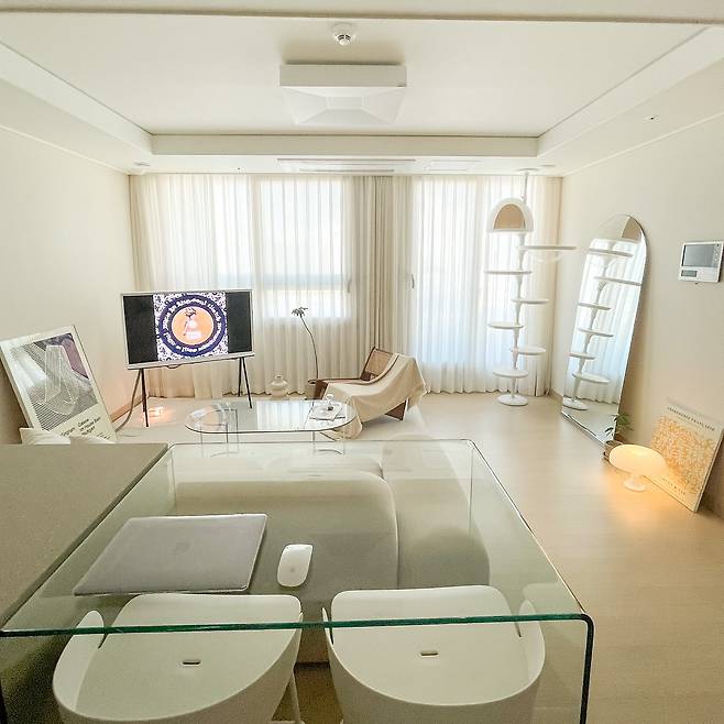집을 꾸밀 때 가장 신경 쓴 건 '없는 게 없어도, 좁지 않도록' 채우는 거였습니다. 하지만 원하는 가구를 모두 들이며 집이 좁아 보이지 않게 하는 건 참 어려운 일이더라고요. 하지만 두 가지를 기억하며 TV, 소파, 식탁, 거실 테이블, 캣타워, 식물, 그림, 거울, 의자 이 모든 것이 있어도 '넓어 보이는 거실'을 완성할 수 있었습니다. 그 방법은 다음 챕터에서 공개합니다!