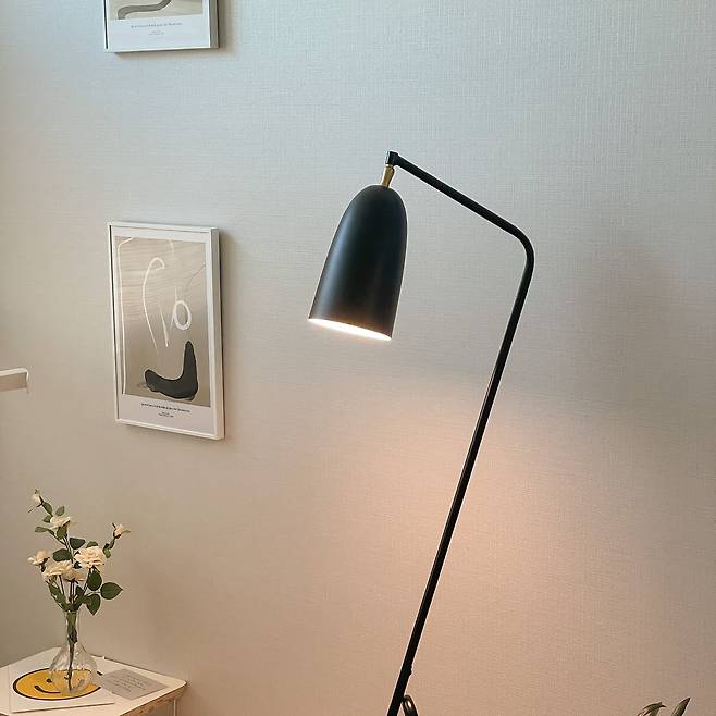서재의 그림은 분위기가 튀지 않고 공간을 채워주는 느낌으로 골랐습니다. 조명은 가지고 싶었던 블랙 스탠드 조명으로 선택해 모던함을 더해주었습니다.