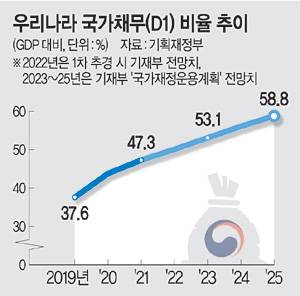 IMF는 재정점검보고서에서 “한국의 2026년 일반 정부 국가채무는 국내총생산(GDP) 대비 66.7%로, 선진국 35개국 중 가장 가파른 증가율을 보일 것”이라고 전망했다. 무디스 역시 “한국의 국가채무가 역사적으로 높은 수준에 있다”며 “장기간 유지해 온 한국의 재정 규율 이력을 시험할 수 있다”고 경고하기도 했다.