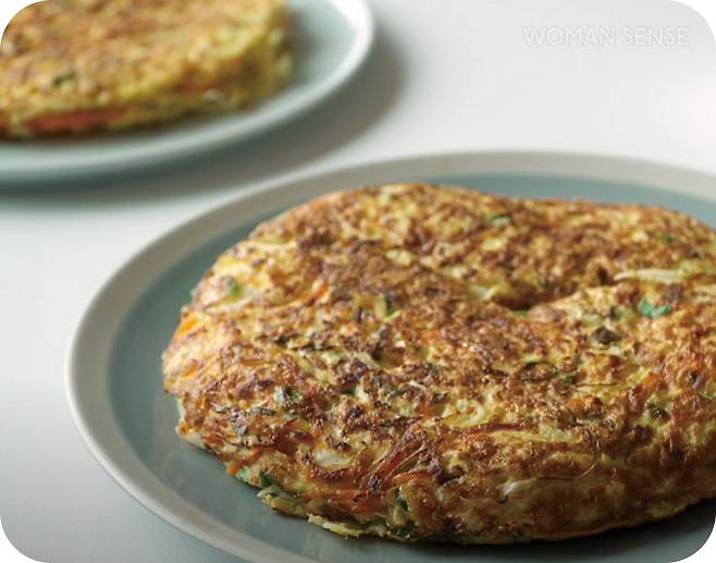 양배추 1/4개, 당근 1/2개, 대파 1대, 달걀 3개, 소금·후춧가루·기름 약간씩
