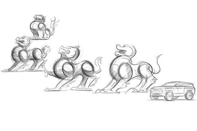 Q6의 외관은 중국 도자기 등에 그려진 상상 속의 동물인 기린(Kylin)에서 영감을 얻어 디자인됐다. 전면부에는 거대한 육각형 그릴과 날렵하게 디자인된 헤드램프가 탑재됐다. 좌우 헤드램프를 연결하는 가로 바도 점등된다. 그릴 내부에는 매트릭스 크롬 패턴이 삽입됐다.