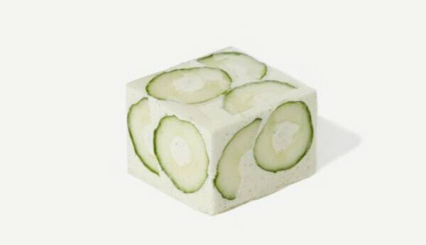 특이한 콘셉트의 선글라스 제조사인 ‘젠틀몬스터’는 자신들의 특이한 감성을 활용한 디저트 카페를 운영 중이다. New, Different, Cake의 세 가지 단어를 조합한 ‘누데이크’라는 이름의 카페로, 이곳에서 판매하는 모든 메뉴가 다른 곳에서 보기 힘든 디자인을 취하고 있다. 큐브 모양의 케이크로, 애플민트의 향이 은은하게 나는 크림에 오이와 토마토 잼이 더해진 청량한 무스 케이크 디저트다.