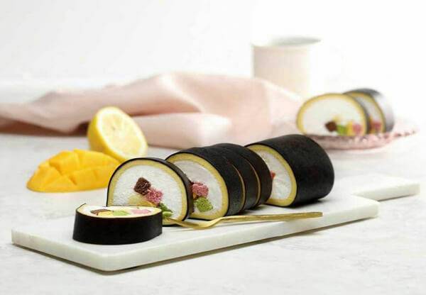 김밥 모양을 한 특이한 롤케이크도 인기다. 카카오톡 선물하기의 ‘밀러가또’에서 판매되는 ‘김밥을 꿈꾸는 생크림 롤케익’은 김밥처럼 검은색 초콜릿으로 둘러싸여 있으며, 안에는 생크림과 알록달록한 디테일의 카스텔라가 배치돼 있다. 생크림 카스텔라의 맛을 베이스로 삼고 있지만, 안에 있는 카스텔라가 제각각 특이한 향을 품고 있어 다채로운 맛을 즐길 수 있는 디저트다.