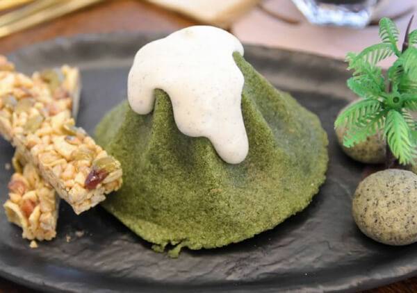 범국민적인 관광지인 제주도의 애월 지역에는 ‘쌀쌀’이라는 이름의 디저트 카페를 찾을 수 있다. 이곳에는 제주도의 상징인 한라산을 소재로 한 케이크를 만날 수 있다. 쑥떡으로 만든 떡케이크로, 부드러운 흑임자 소스를 뿌려서 즐기는 디저트다. 떡케이크 위에 소스를 뿌리면, 마치 눈이 내린 한라산과 같은 모습을 취하는, 마음대로 장면을 연출해가며 즐길 수 있는 디저트 메뉴다.