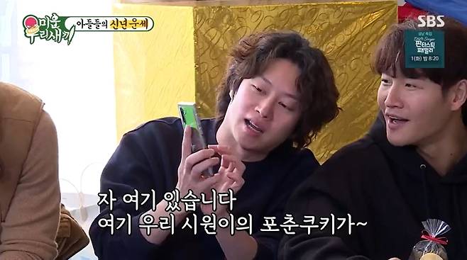 이때 김종국은 과거 화제 됐던 '최시원의 포춘쿠키'를 언급했고 김희철은 "시원이가 미우새에 함께 할 수 있는 이유다. 이렇게 여유있는 표정 좀 보라"며 최시원의 포춘쿠키 사진을 공개했다.