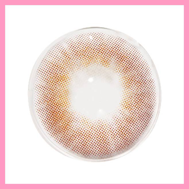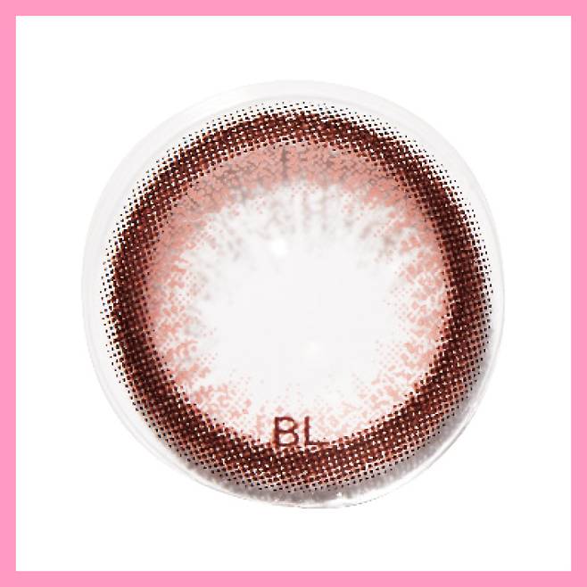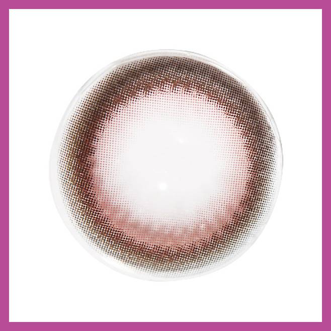 일회용 렌즈는 무조건 자연스럽다? 쉽게 찾아보기 힘든 밝은 핑크 그래픽과 진한 브라운 서클링을 조합한 원데이 렌즈. 12.9mm로 자연스러운 사이즈.