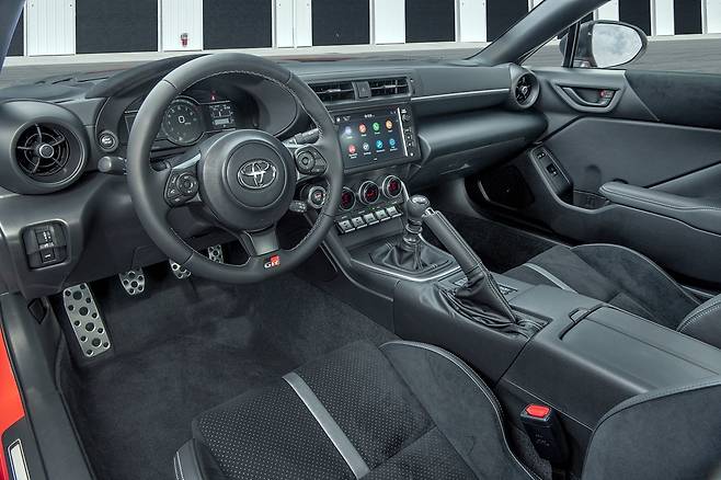 GR86은 과거 이니셜 D에 열광했던, 이제는 배나온 중년이 된 아재들만 유혹하지 않는다. 2개의 USB 포트, 듀얼 존 에어컨, 음성인식 기능, 무선 애플 카플레이, 어댑티브 크루즈 컨트롤 버튼으로 ‘요즘 20대’도 겨냥한다. 6방향 전동 조절 시트와 알칸타라로 감싼 뒷좌석을 통해 ‘고급화’에도 신경 썼다. 또한, 스피커 개수는 8개로 키우고 200W 서브우퍼를 더했다.
