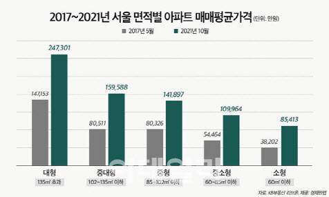 박병찬 리얼피에셋컨설팅 대표는 “갈아타기를 하려는 1주택자들은 2013년 저점 대비 소형 아파트가 3배 올랐다면 대형은 2배 올랐기 때문에 지금은 달리는 소형보다는 걷고 있는 대형평수에 올라타는 게 좋다”고 분석했다.