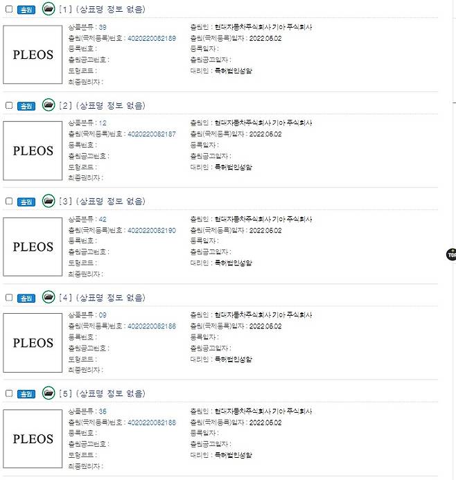 6일 관련 업계에 따르면 현대차와 기아는 지난 2일 국내 특허청에 플레오스란 이름으로 신규 상표권을 출원한데 이어 현지시간으로 4일 유럽연합 지식재산청(EUIPO)에도 동일한 이름으로 상표권 출원을 신청했다. 현재 해당 특허는 심사 대기 상태에 있다.