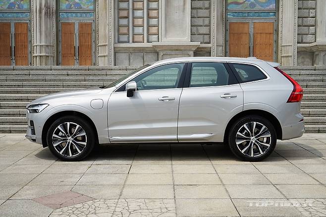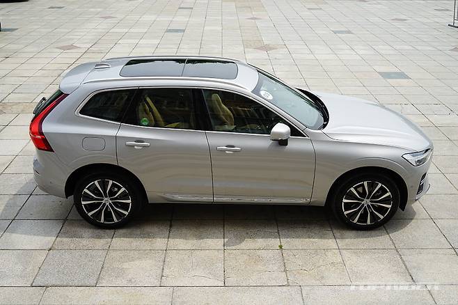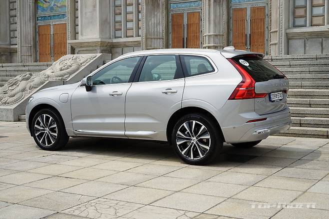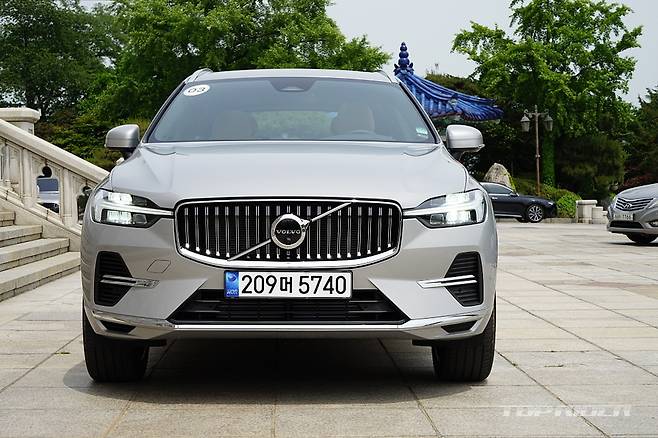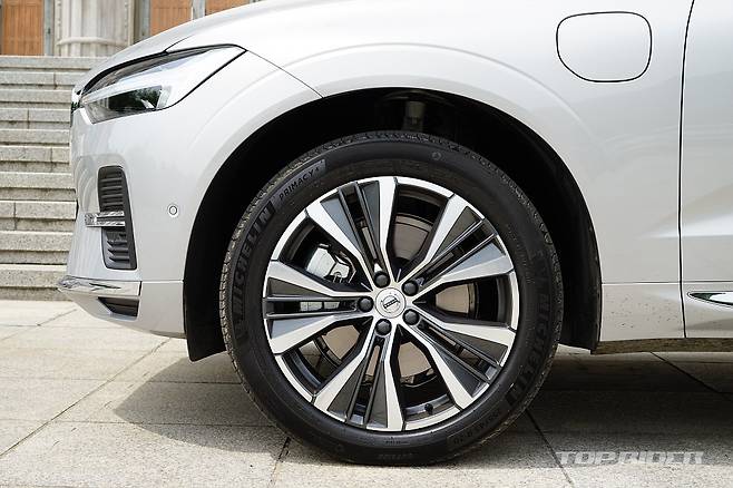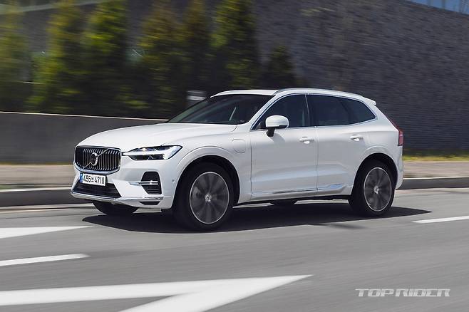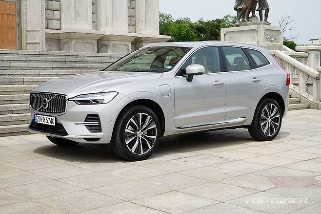 시승차는 XC60 리차지 모델이다. 인스크립션의 옵션을 대부분 포함하고 있지만, 얼티밋 브라이트(Ultimate Bright)라는 별도의 트림명을 사용한다. 2.0리터 4기통 가솔린 터보엔진(312마력, 40.8kgm)과 전기모터(143마력, 31.5kgm) 합산 455마력, 72.3kgm를 발휘한다.