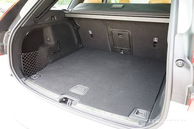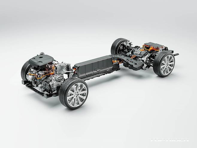XC60의 또 다른 차별화는 배터리팩의 위치다. 볼보의 SPA 플랫폼은 설계시부터 전동화가 고려돼 배터리팩이 센터터널에 위치한다. 트렁크 바닥에 위치해 트렁크 공간을 침해하는 타사와는 다른 설계다. 전기 모드(Pure) 주행시에는 후륜에 위치한 전기모터만으로 주행한다.