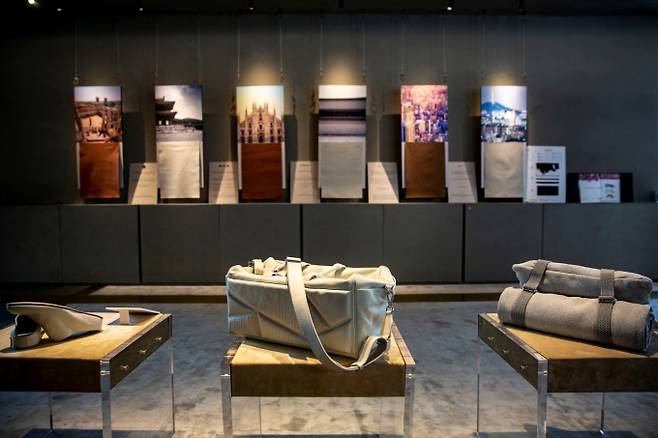 이를 위해 다니, 딜론, 도모도쏠라, 두올과 아코플레닝과 같은 기존 친환경 소재 개발 파트너사와 협업해 제작한 쿠션, 여행용 가방, 슬리퍼, 담요 등 승객들에게 안락함과 편안함을 제공할 수 있는 제품으로 전시를 구성했다.
