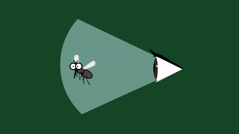 또한, 배경의 영향도 있습니다. 대부분 가정의 인테리어를 떠올려보면 단조롭지 않습니다. 이런 복잡한 배경 속에서 눈이 움직이는 물체를 안정적으로 좇기란 쉬운 일이 아닌데, 그래도 비행 중인 모기를 눈으로 좇을 때는 눈은 배경을 억제하려고 노력합니다.